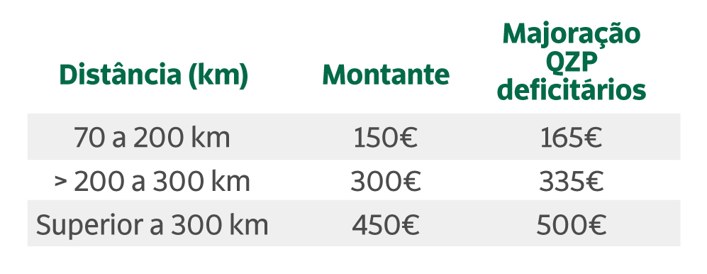 No caso dos docentes a lecionar em escolas inseridas nas áreas geográficas de Quadros de Zona Pedagógica (QZP) considerados deficitários, foi proposta a introdução de uma majoração, conforme a tabela em baixo. Assim, o MECI propôs que os docentes a lecionar numa zona geográfica considerada carenciada recebam um apoio de 165 euros se colocados entre os 70 e os 200 quilómetros da sua residência fiscal, um apoio de 335 euros se colocados entre os 200 e os 300 quilómetros, e um apoio de 500 euros mensais se colocados a mais de 300 quilómetros da sua residência fiscal.