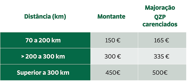 No presente ano letivo, o Governo decidiu alargar o apoio à deslocação a todos os educadores de infância e professores das escolas da rede pública colocados a mais de 70 quilómetros da sua residência fiscal e majorar o valor deste apoio no caso de docentes colocados em zonas geográficas consideradas deficitárias, conforme a tabela em baixo: